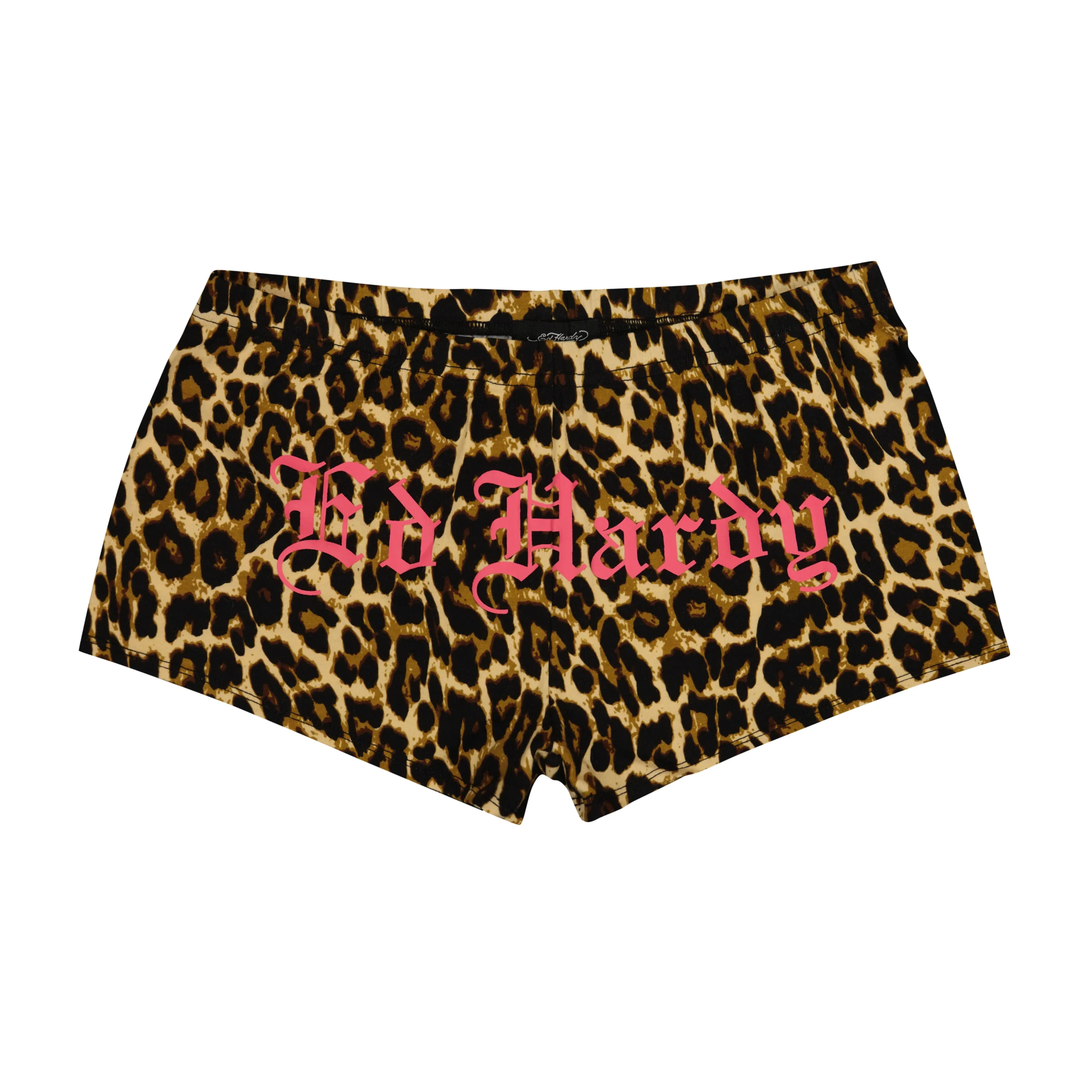 Mini biker shorts constructed from a leopard cotton blend. Features layered archival Ed Hardy graphics and multiple signature logos. Pair with our Hearts Off The Shoulder Top to complete your look.