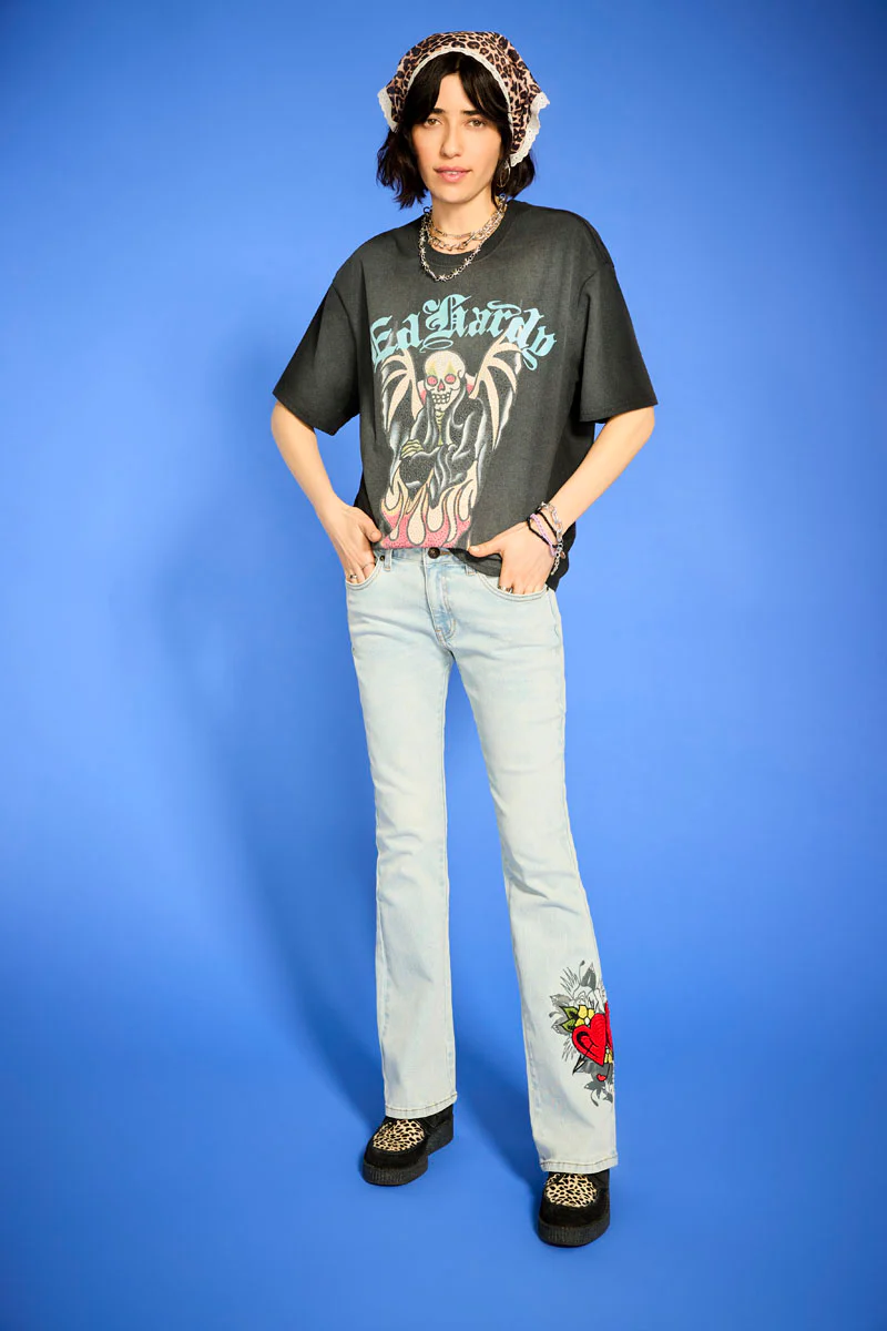 These heavyweight baggy sweatpants feature rhinestone XMAN graphics and a signature Ed Hardy by Ken Carson logo. This product fits true to size, for an oversized look it we recommended sizing up.