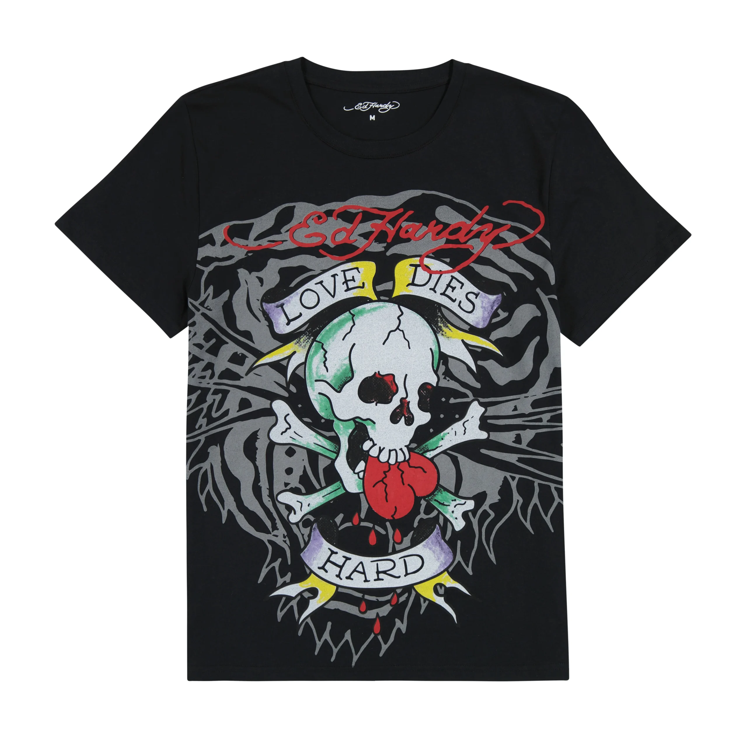 This t-shirt is cut in a regular fit and constructed from a soft cotton blend. Complete with an Ed Hardy Love Skull graphic and two archival blue logos.