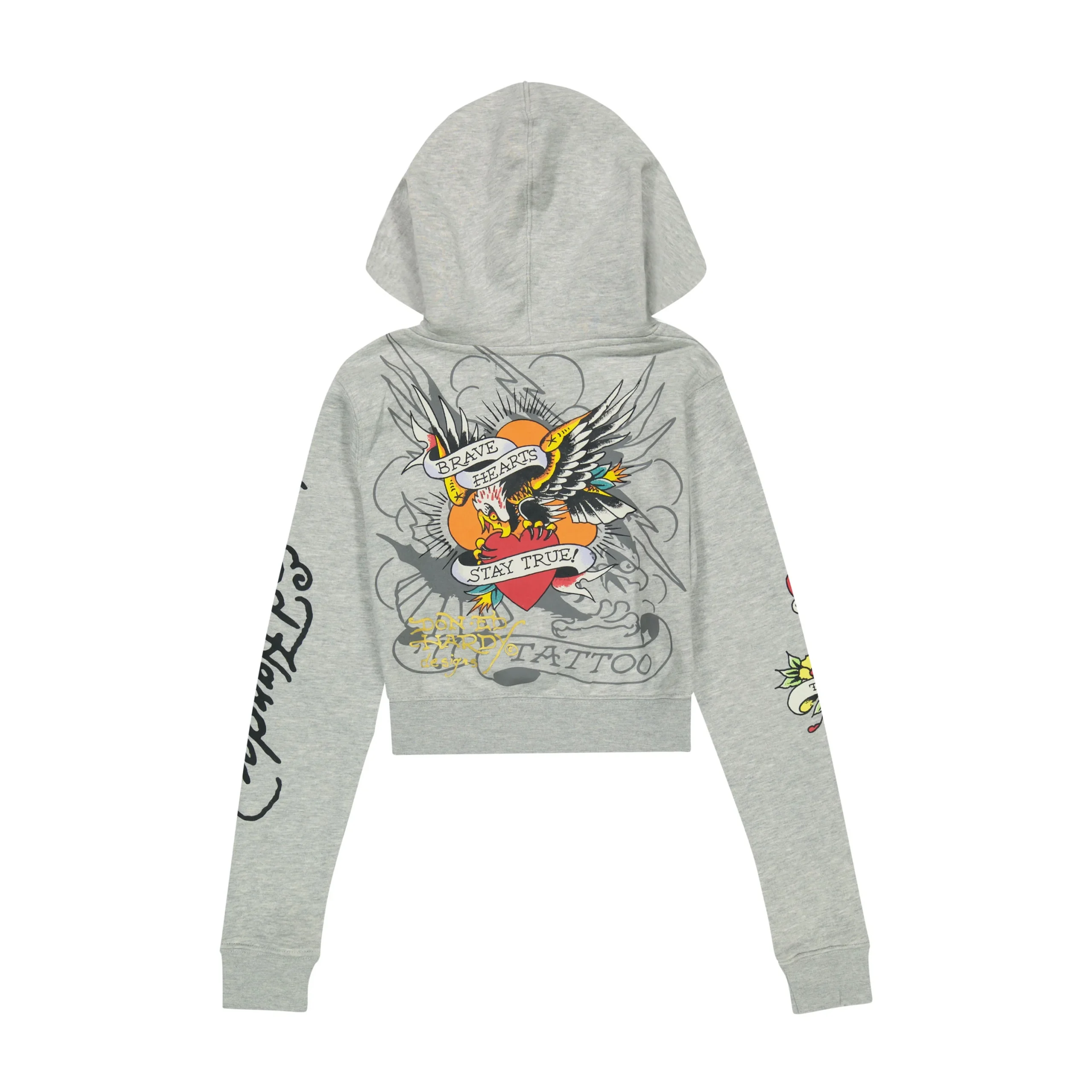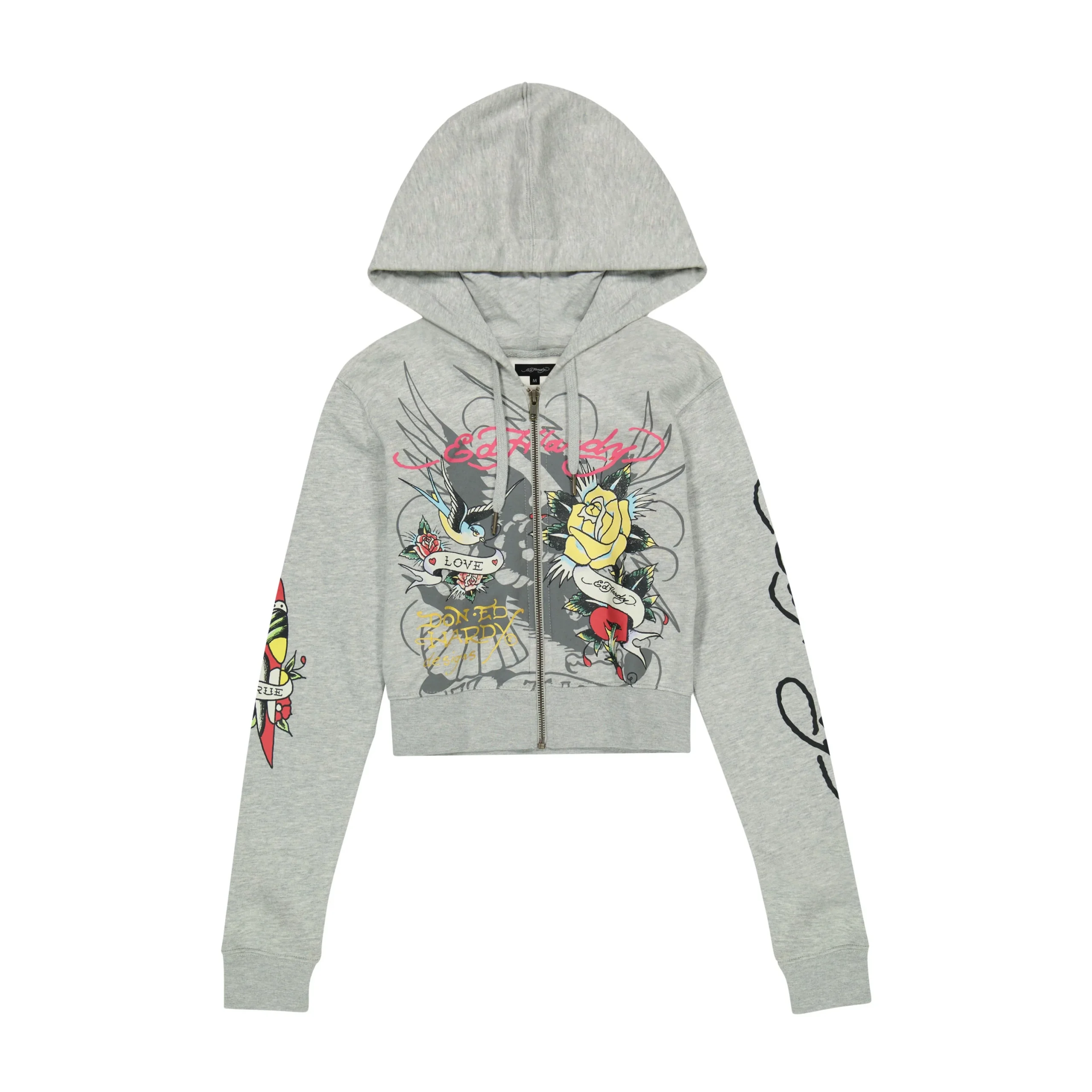 Ed Hardy’s fleece sets add a modern twist to the styles that reigned in the early 2000’s. This wine sweatshirt features a cropped fit complete with a signature amor butterfly graphic.